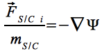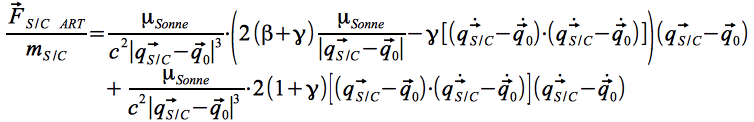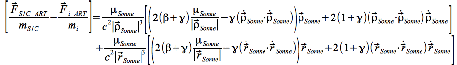 und ersetzt in der Summenoperation den Term für j=i, so dass sich Eq.13 für einen Satelliten, der sich um den Planeten (i) bewegt, wie folgt schreiben lässt: