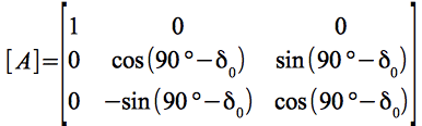 Zunächst muss die Äquatorebene des Planeten durch eine Drehung um die Knotenlinie und um den Winkel 90°- σ0 in die Erdäquatorebene gedreht werden. Dies erfolgt durch Multiplikation mit: