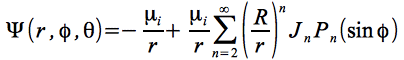 An dieser Stelle sollen zudem noch die Einflüsse durch Inhomogenitäten im Gravitationsfeld des Planeten berücksichtigt werden, um den sich der Satellit bewegt. Das Gravitationspotential des entsprechenden Planeten (i) ist unter Berücksichtigung zonaler Terme darstellbar durch :