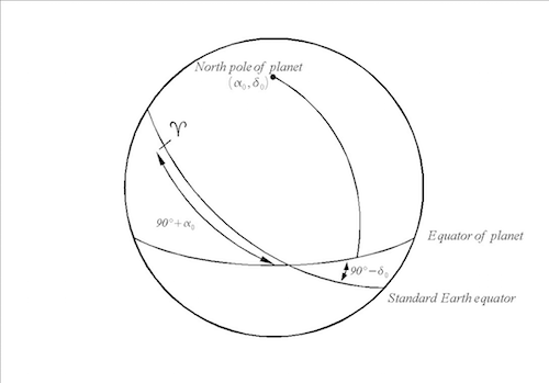 Abb.4: Beziehung zwischen Standarderdäquatorsystem und Äquatorsystem des Planeten.
