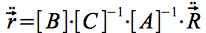 Eq.15 ist im Äquatorsystem des jeweiligen Planeten gegeben, das durch die Lage der Rotationsachse (Z-Achse) und der Knotenlinie aus Standarderdäquator und Planetenäquator (X-Achse) vorgegeben ist. Um die Darstellung im planetozentrischen Ekliptiksystem zu erhalten, sind folgende drei Drehungen nötig: