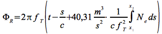 Sendet ein Satellit ein Signal mit der Frequenz fT aus, berechnet sich die Phase ΦR des zum Zeitpunkt t von einer Bodenstation empfangenen Trägersignals (Einwegmodus) zu: