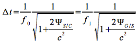 Die Koordinate t ist hierbei die Zeit eines nicht durch ein Gravitationsfeld beeinflussten äußeren Beobachters. Dieser Beobachter sieht in einem Zeitintervall Δt, dass zwei aufeinander folgende Wellenberge die Sonde verlassen und in einem gleichlangen Zeitintervall von der Bodenstation empfangen werden (One-way Downlink). Es gilt nun folgender Zusammenhang zwischen den Zeitintervallen und den Frequenzen des Signals an der Sonde (f0) und der Bodenstation (f1):