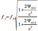 Die gesamte relative Frequenzverschiebung unter Berücksichtigung der Relativbewegung von Sender und Empfänger sowie der eben beschriebenen Gravitationsrotverschiebung führt auf folgende Beschreibung [23]: